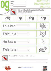 CVC writing worksheets include printable worksheets, which practice writing and recognising CVC words and pictures. Write these lowercase CVC words and sentences for grade 1 kids. Each CVC worksheet for preschool includes 4 different words and pictures to colour. Learn to free hand write consonant vowel consonant words in english at eslphonicsworld with CVC phonics worksheets.