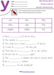 Y ending sound worksheets include printable worksheets ending in Y. Y ending sound worksheets end in y but sound like /e/ or /i/. Learn to match up the correct y words for kids and practice y ending sound /e/ and y ending sound /i/ with these free printable phonics worksheets for 2nd grade learners. This set includes 8 worksheets to identify words ending in y that sound like /e/ or /i/ at eslphonicsworld.